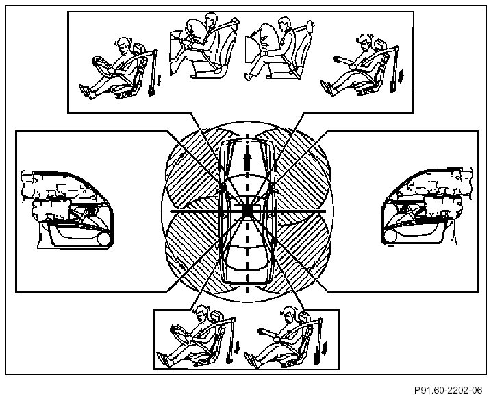 If an accident occurs the relevant airbags and emergency tensioning retractors are triggered, depending on the severity of the detected collision. The following safety devices can be triggered if an accident occurs, depending on the configuration of the vehicle: