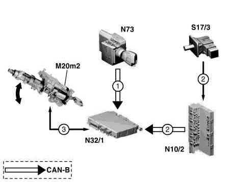 For this the following information is read out and processed by the driver-side front seat adjustment control unit with memory (N32/1) via CAN-B (CAN-B):