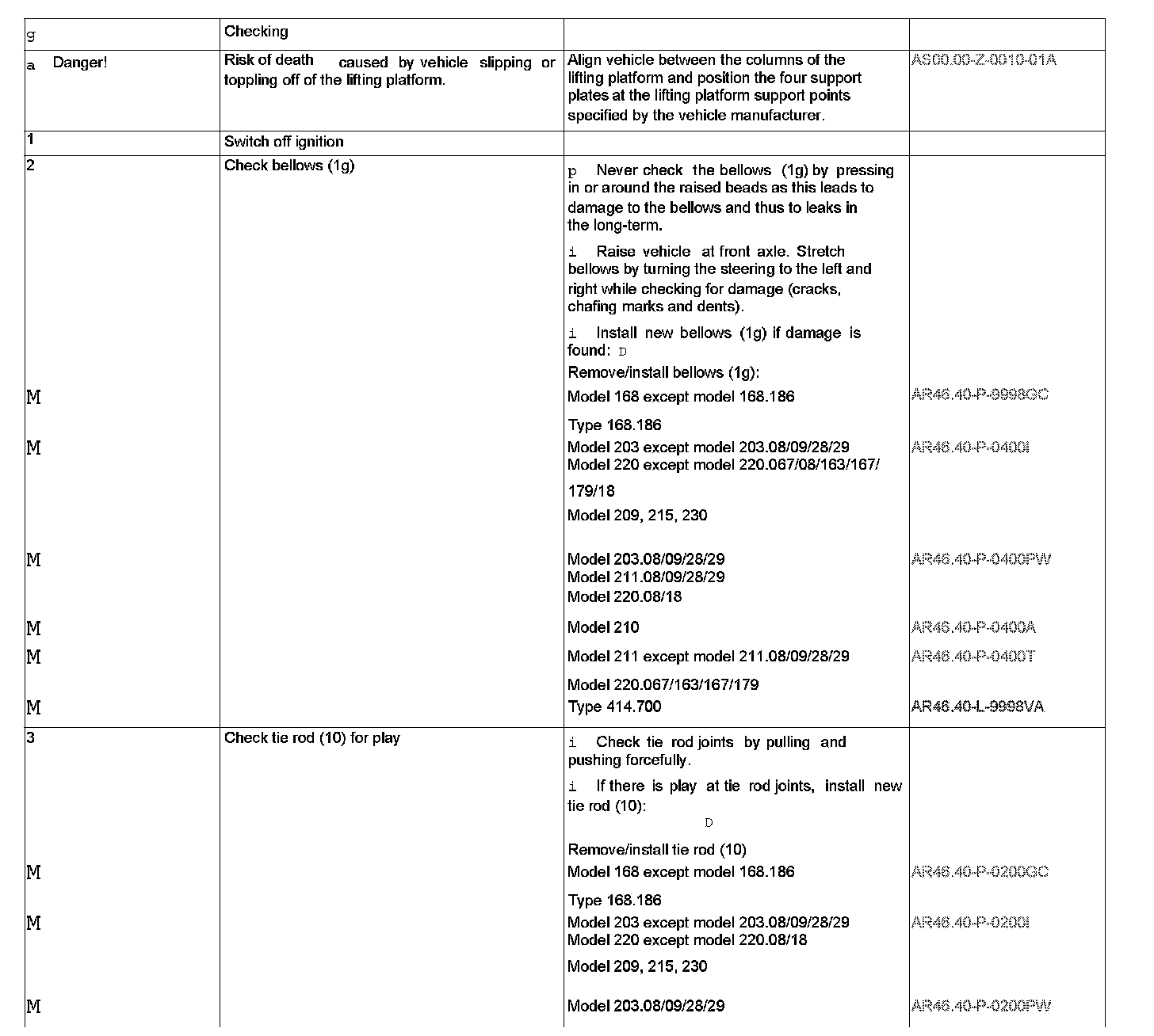AP46.00-P-4653F Check track rod and drag link linkage for play, check rubber boots