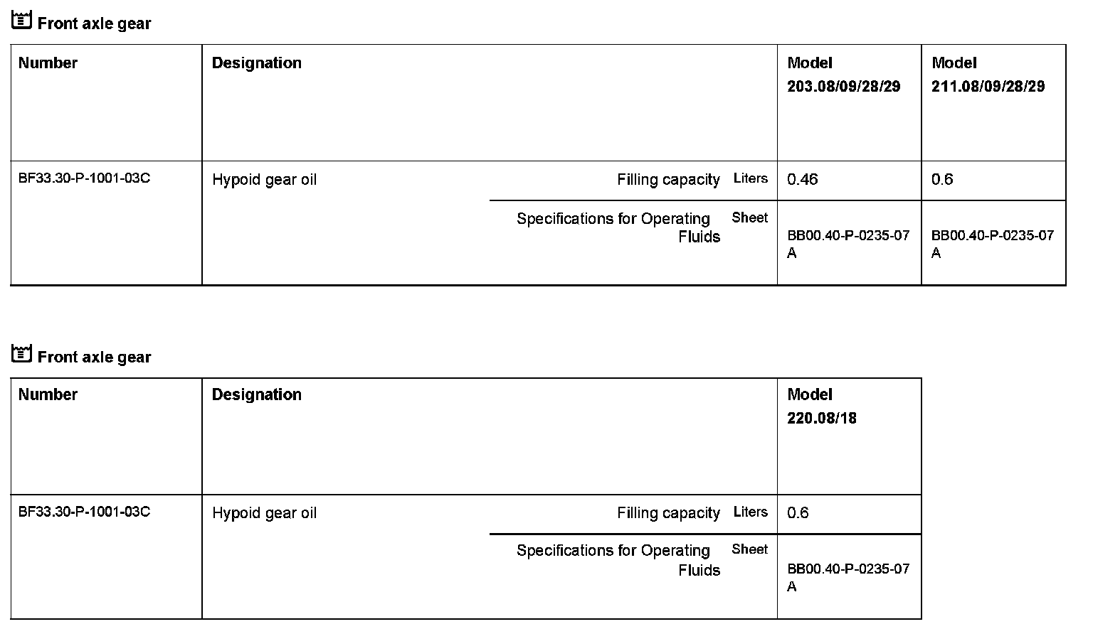 Conduct oil level check only in installation position and at room temperature. Not when front axle gear is at normal operating temperature.