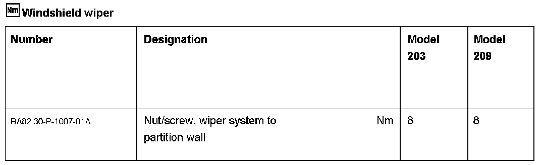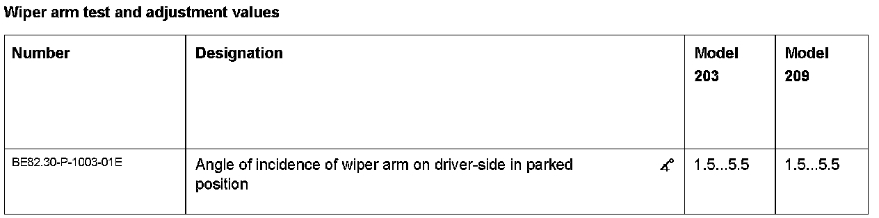 Wiper Arm Test And Adjustment Values: