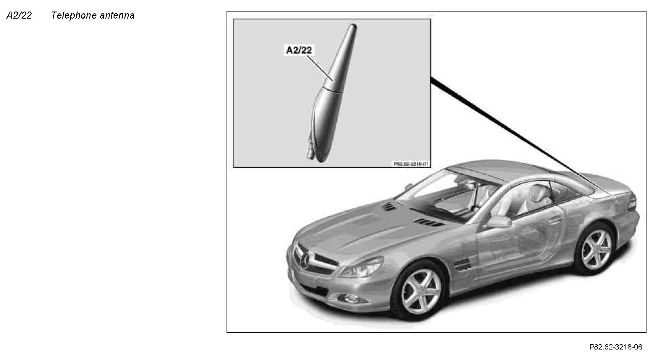 The telephone antenna is installed at the left rear fender.