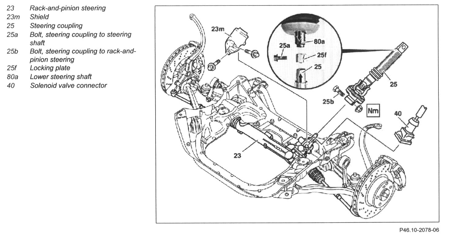 - Installation: Turn rack-and-pinion steering (23) to center position, mount steering coupling (25).