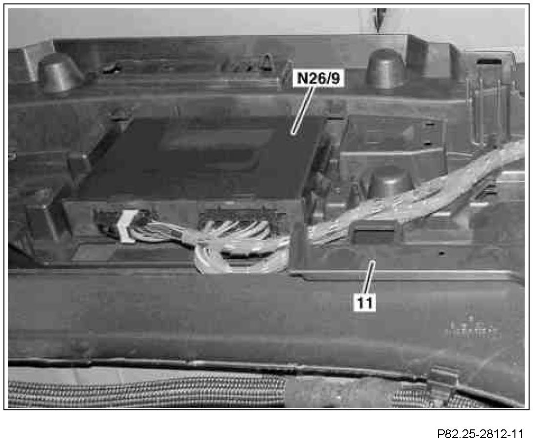 2 Place the special-purpose vehicle multifunction control unit (N26/9) into the implement carrier plate (11).