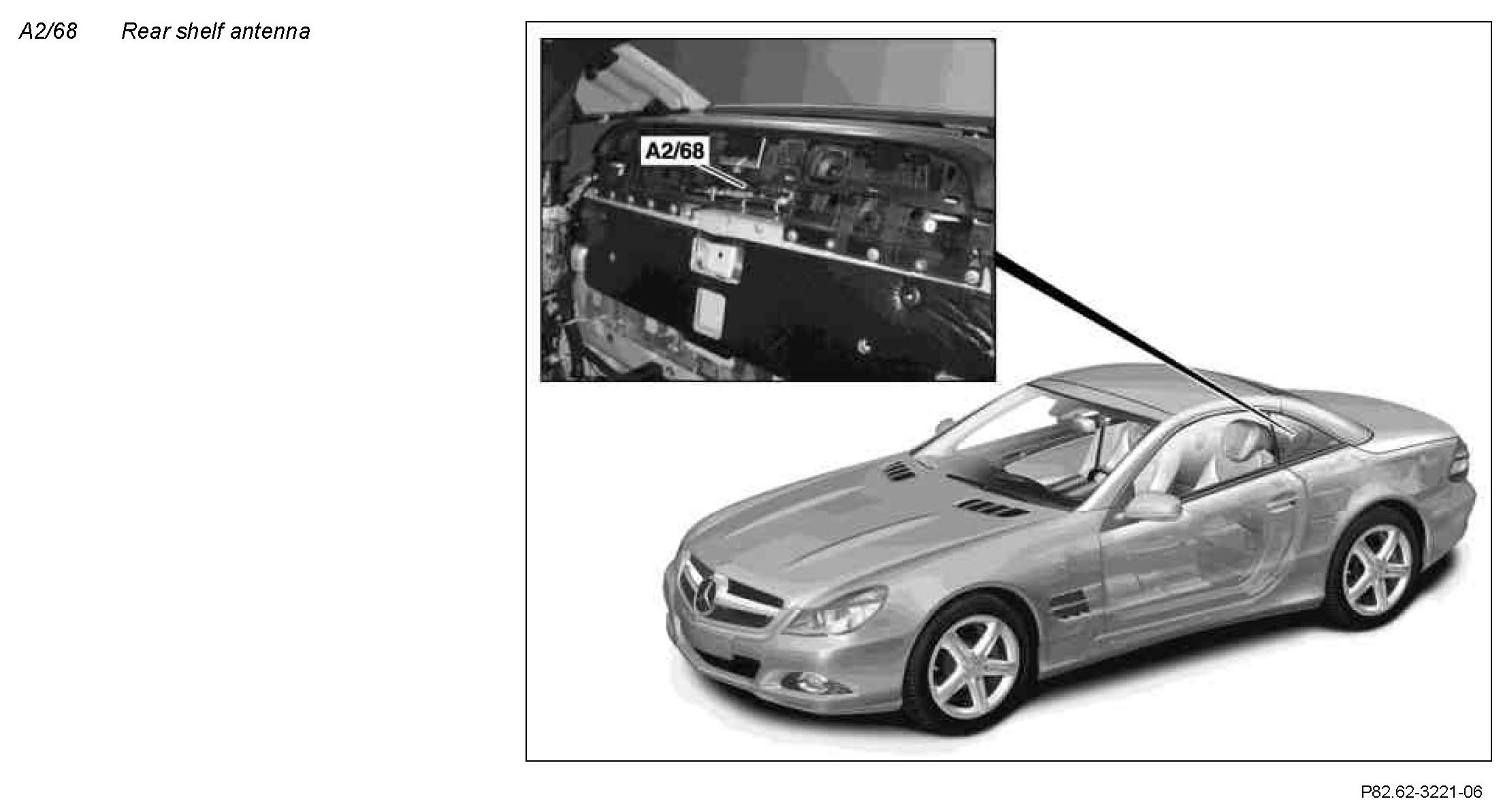 The rear shelf antenna is located in the rear under the cover in the rear wall.