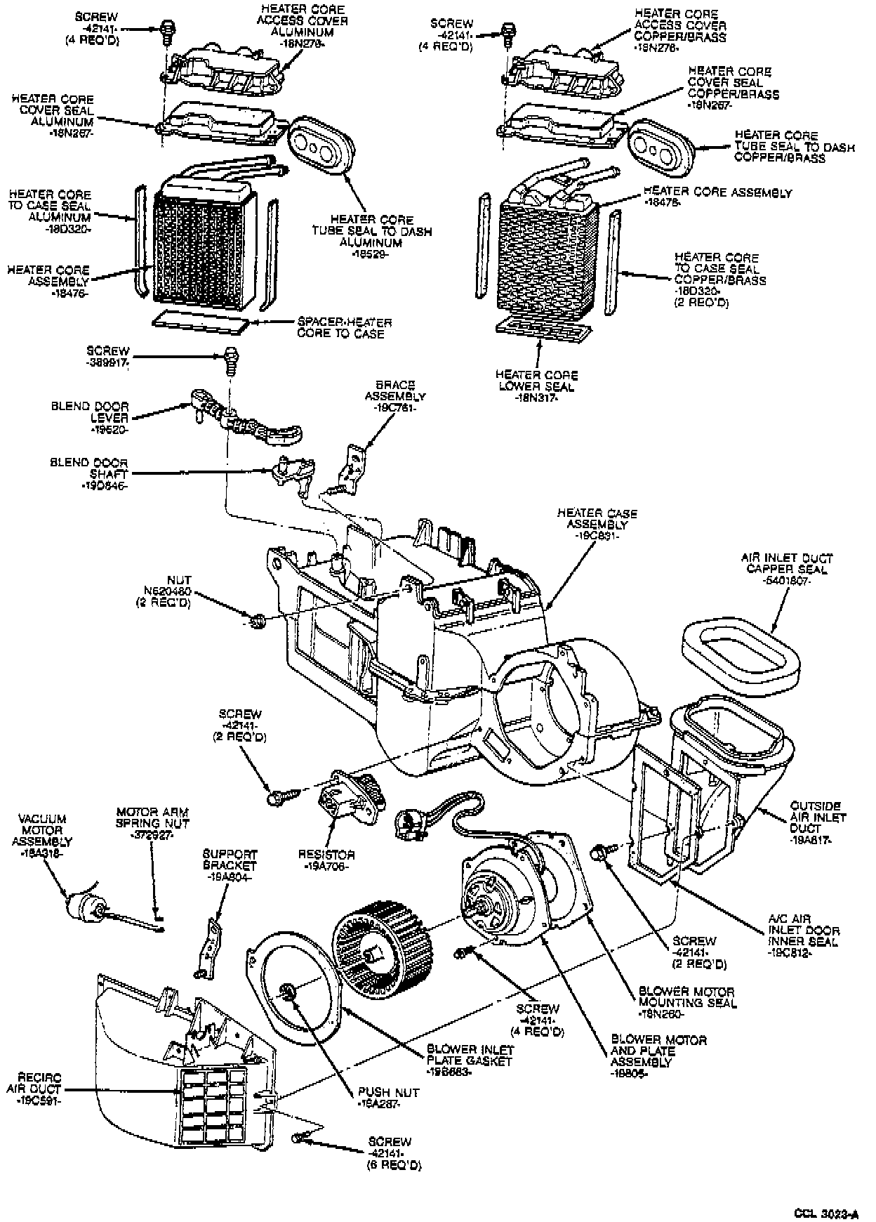 5. Remove the recirculating duct from the heater assembly, lowering the recirculating duct from between the instrument panel and the heater case.