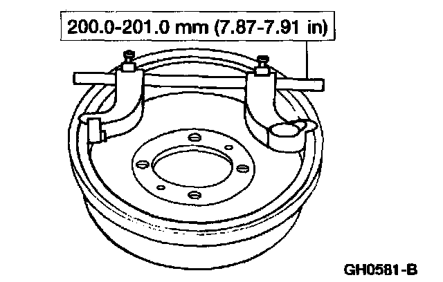 3. Use Brake Drum Micrometer to measure the braking surface diameter. If the inside diameter measures more than the maximum specification shown on the outside of the brake drum, replace the brake drum.