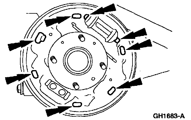 NOTE: If new rear brake shoes and linings are being installed, resurface the brake drums to remove glazing and to ensure an equal friction surface from side-to-side. Resurfacing will also correct out-of-round and bell conditions.