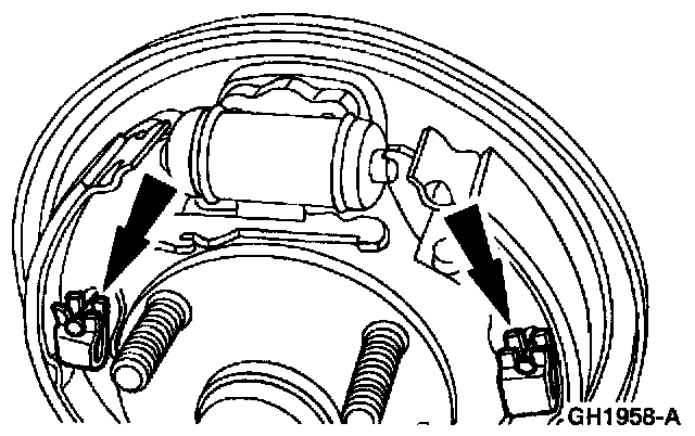 2. Position the rear brake shoes and linings; install the brake shoe hold-down springs.