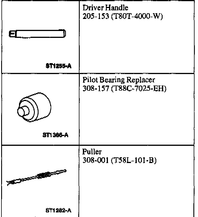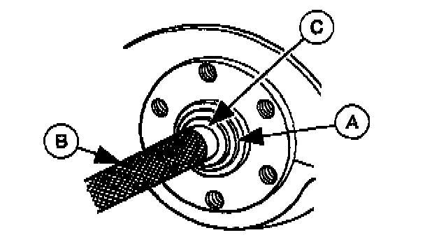 1. Use (A) Pilot Bearing Replacer and (B) Driver Handle and install the (C) transaxle input shaft pilot bearing.