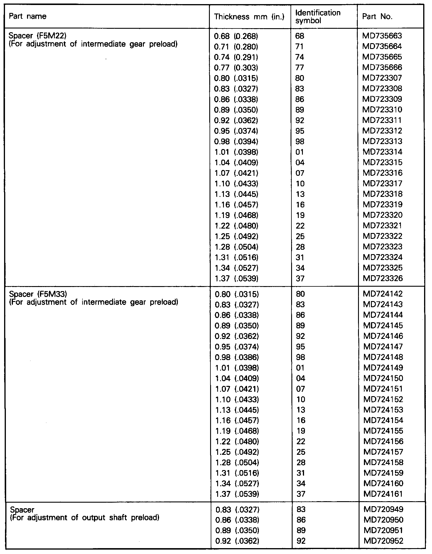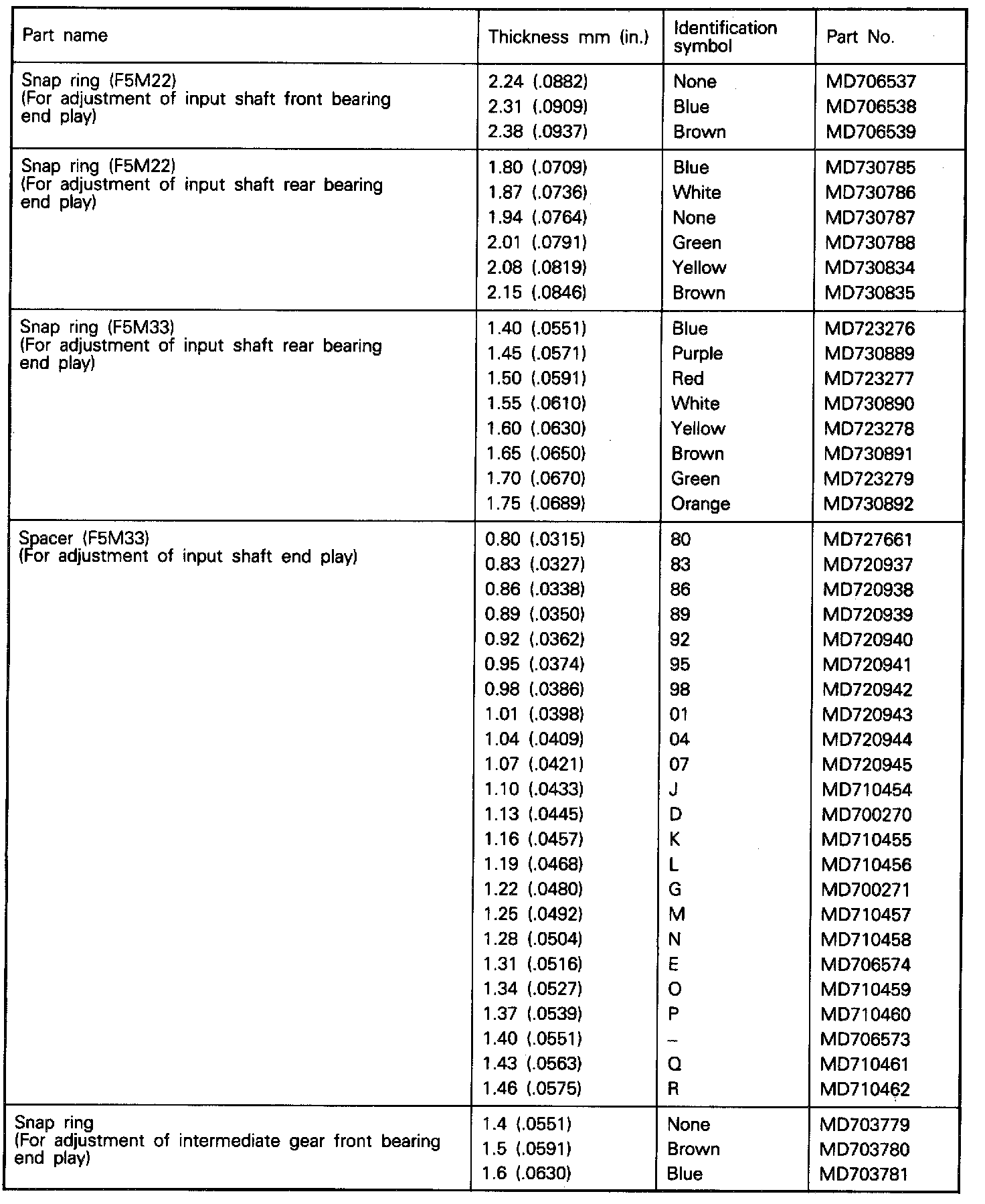 Manual Transmission/Transaxle: Application and ID