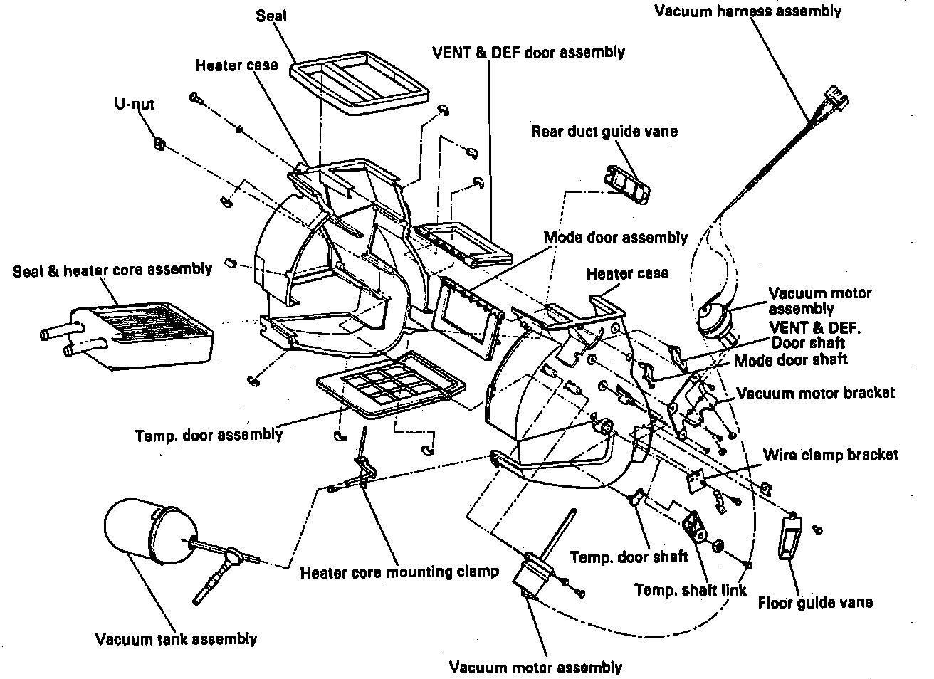 11. On models equipped with A/C, remove evaporator assembly. Refer to procedure outlined under EVAPORATOR CORE.