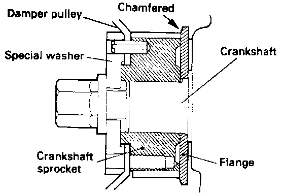 8. Install the crankshaft pulley. In this case, make sure that the crankshaft sprocket pin fits the small hole in the pulley.