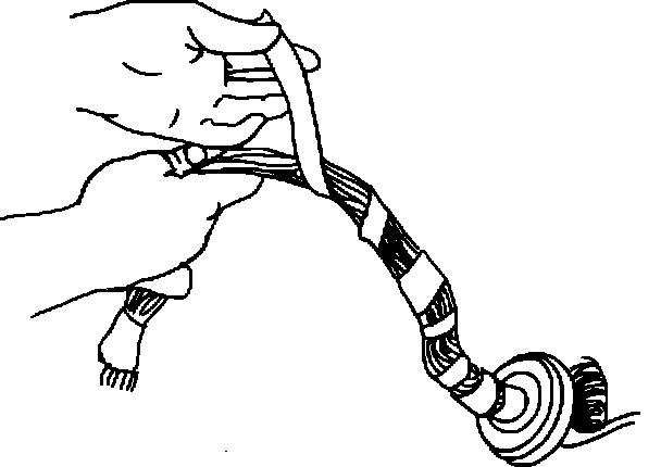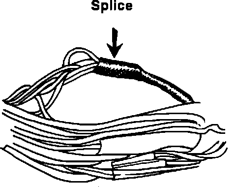 7. Fabricate a jumper harness to replace the discarded crimp connector splice. The jumper harness should be the same length as the splice. Use black, 12-gauge wire, and strip 1/2 inch of insulation from each end.