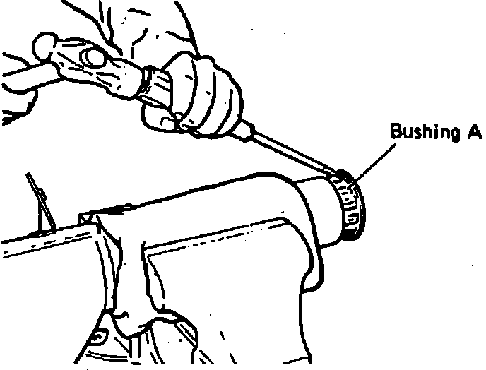4. Using screwdriver, remove bushing ``A'' from lefthand suspension arm, Fig. 4.