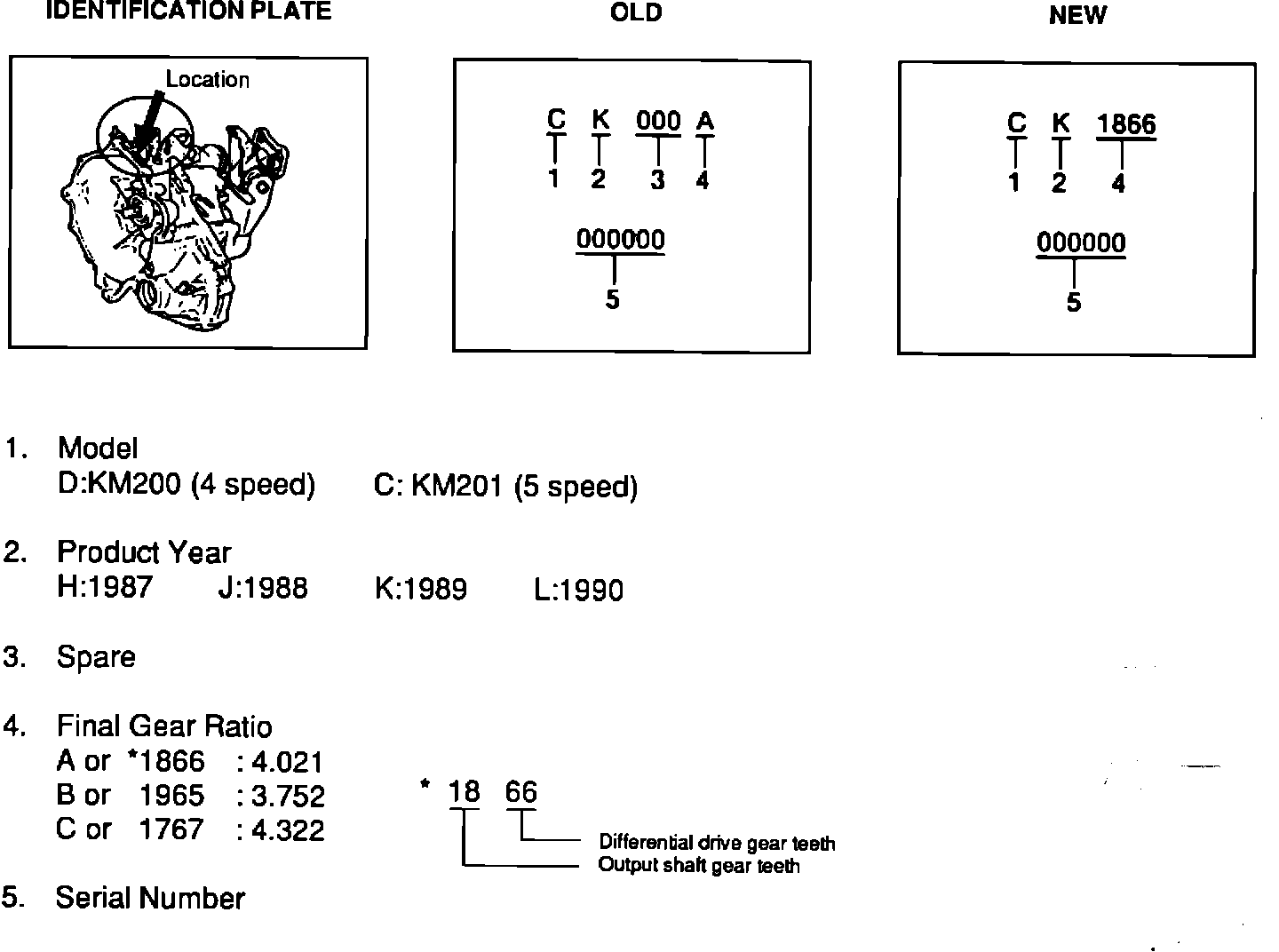 From August 27, 1989, a new numbering system has been added to Precis manual transaxle.