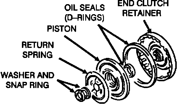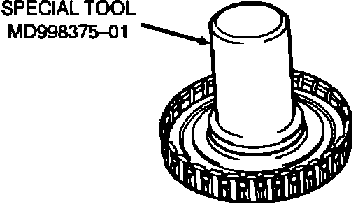 When reassembling the end clutch on 4 speed automatic transaxles, it is important that the piston be installed squarely into the end clutch retainer. Pressing the clutch assembly together by hand may damage the oil seals (D-Rings) causing oil pressure leakage and premature wear of the clutches. This bulletin provides procedures that use special tool MD998375-01 (Crankshaft Front Oil Seal Installer) allowing the piston to be pressed squarely into the front end clutch retainer with the aid of a hydraulic press.