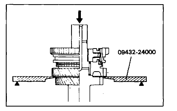 3. Remove the 1st-2nd gear synchronizer assembly, 2nd gear and the needle roller bearing together, using the special tool (09432-24000).