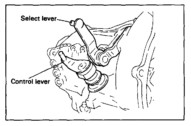 3. Pull out the 1st-2nd shift rail and fork assembly with the select lever pushed to 5th-reverse shift rail side.