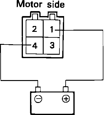 1. Connect battery positive to terminal 1 and battery negative to terminal 4, ensure motor runs, Fig. 38.