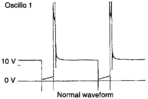 2. Control signal of ignition power transistor Connect the probe to oscilloscope pick-up point 2 as shown in the circuit diagram, and check the control signal of the ignition power transistor.