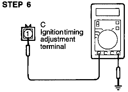STEP 6: Measure the voltage of the ignition timing adjusting terminal.