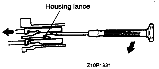 Connectors which are loose shall be rectified by removing the female terminal from connector housing and raising its lance to establish a more secure engagement. Removal of connector terminal used for MFI and 4 A/T control circuit shall be done in the following manner: