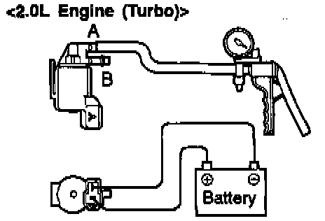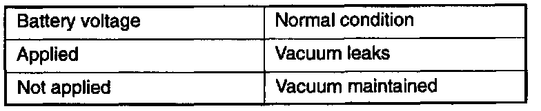 4. Check airtightness by applying a vacuum with voltage applied directly from the battery to the purge control solenoid valve.