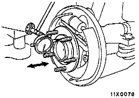 Place a dial gauge against the hub surface; then move the hub in the axial direction and check whether or not there is end play.