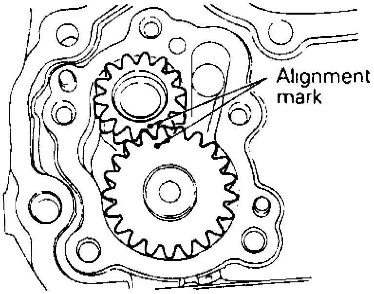 Fig. 48 Oil Pump Gear Alignment Marks: