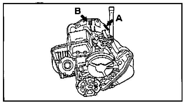 On replacement A/T assemblies, the part number is located where indicated by "B" in the illustration.