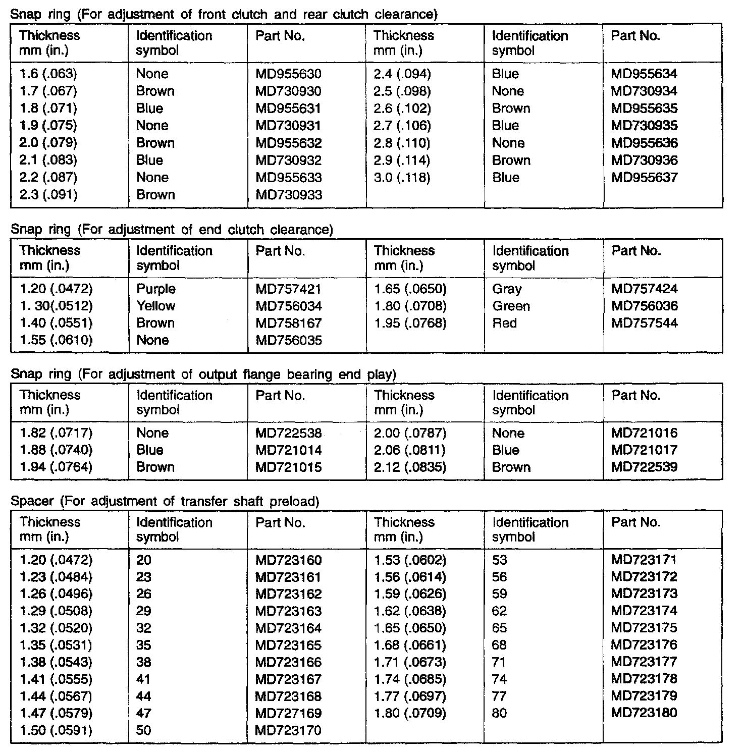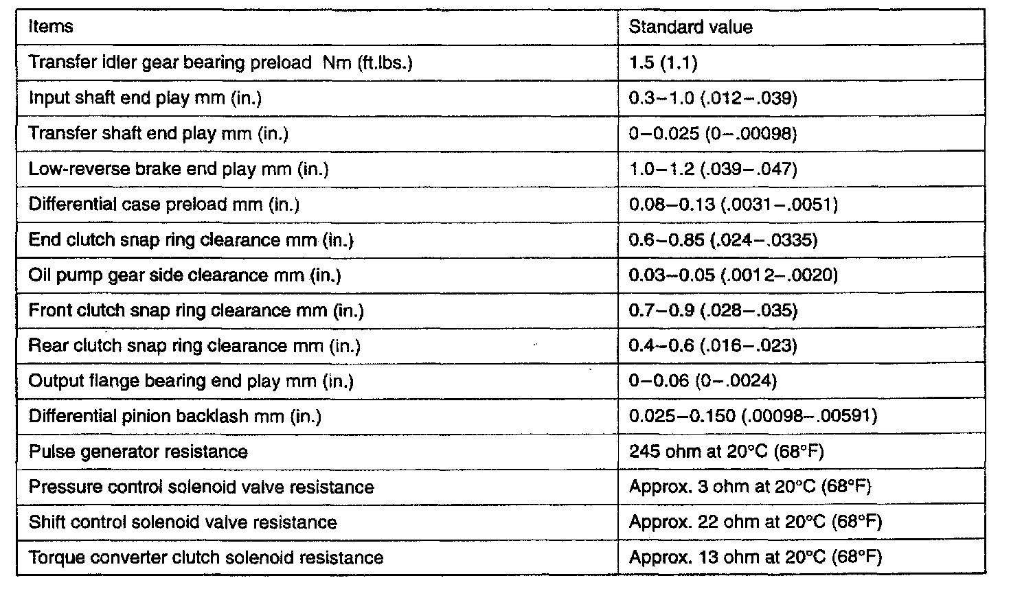 F4A23 4-spd A/T, Clutch Clearances, Output Bearing Play & Transfer Shaft: