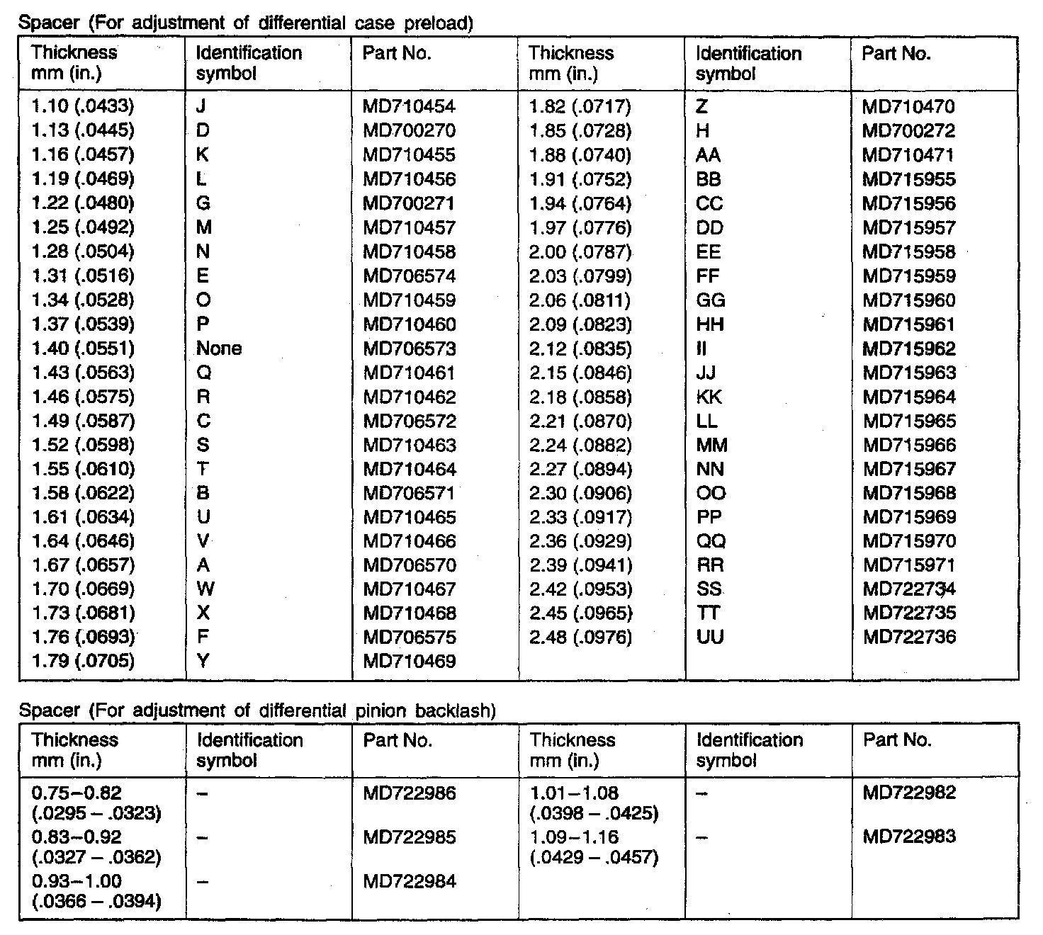 F4A23 4-spd A/T, Differential Case Preload & Pinion Backlash: