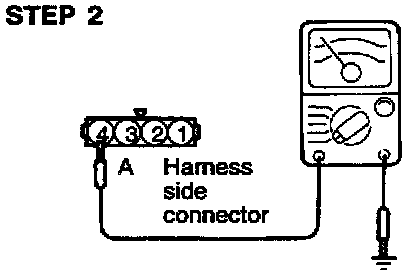 (3) Connect a pointer type ohmmeter between terminal (4) (sensor ground) and terminal (2) (sensor output).