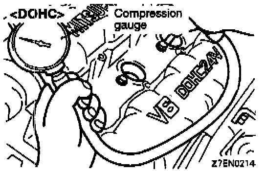 (7) Set the throttle valve in a fully opened position, and crank the engine to measure the compression pressure.