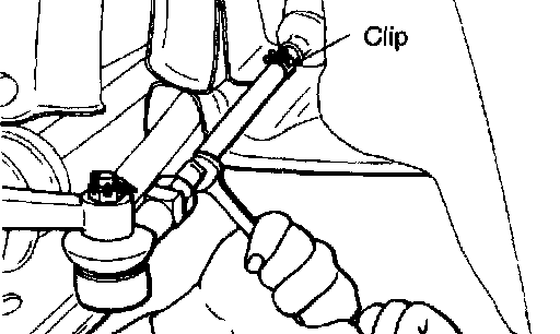 1. Adjust the toe-in by undoing the clips and turning the left and right tie rod turnbuckles by the same amount (in opposite directions).