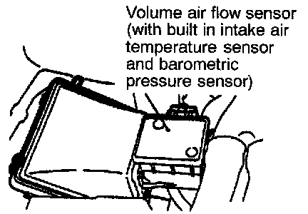 - The volume air flow sensor located in the air cleaner converts the engine intake air volume into a pulse signal of frequency proportional to the air volume and inputs it to the engine control module, which then computes the fuel injection rate, etc. based on the input signal.