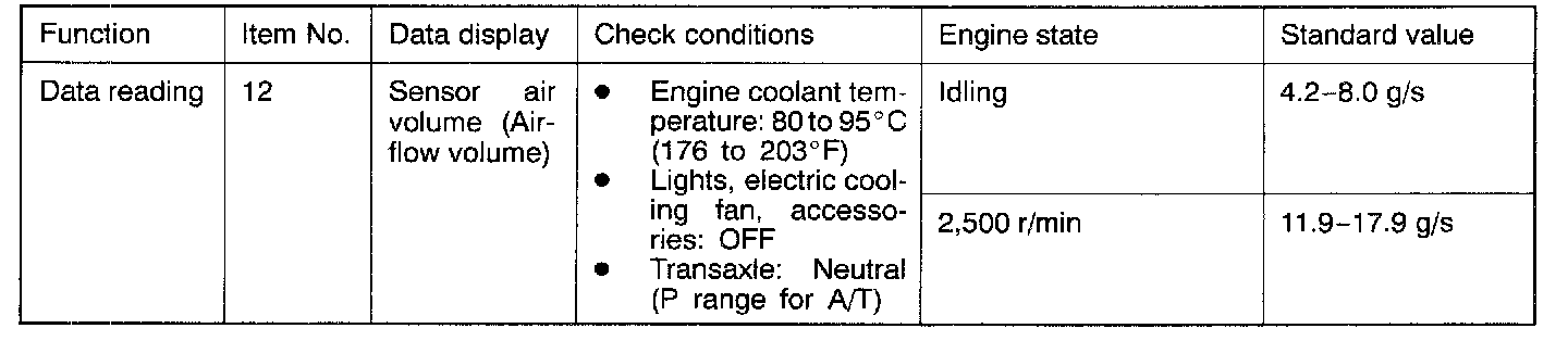 NOTE: When the vehicle is new [within initial operation of about 500 km (300 miles)], the volume air flow sensor output frequency may be about 10% higher.