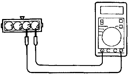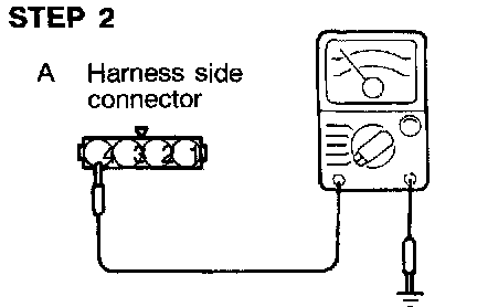 3. Check the continuity across the throttle position sensor connector terminal (4) (Sensor ground) and (3) (Closed throttle position switch).