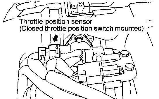 *: The closed throttle position switch normally turns off when the voltage of the throttle position sensor is 50 - 100 mV higher than the voltage at the idle position. If the closed throttle position switch turns back on after the throttle position sensor voltage has risen by 100 mV and the throttle valve has opened, the closed throttle position switch and the throttle position sensor need to be adjusted.