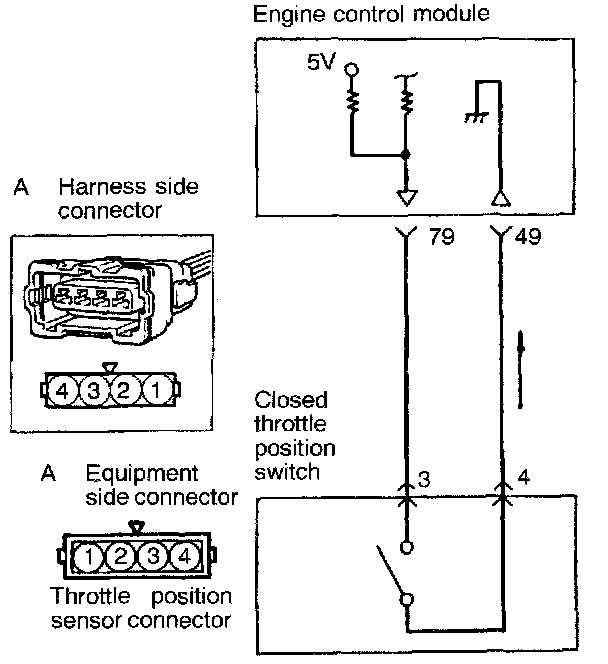 - The voltage in the engine control module is applied to the closed throttle position switch through a resistor. When the accelerator pedal is released, the closed throttle position switch is turned on to conduct the voltage to ground. This causes the closed throttle position switch terminal voltage to go low from high.