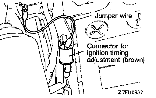 8. Using a jumper wire, ground the ignition timing adjusting terminal.