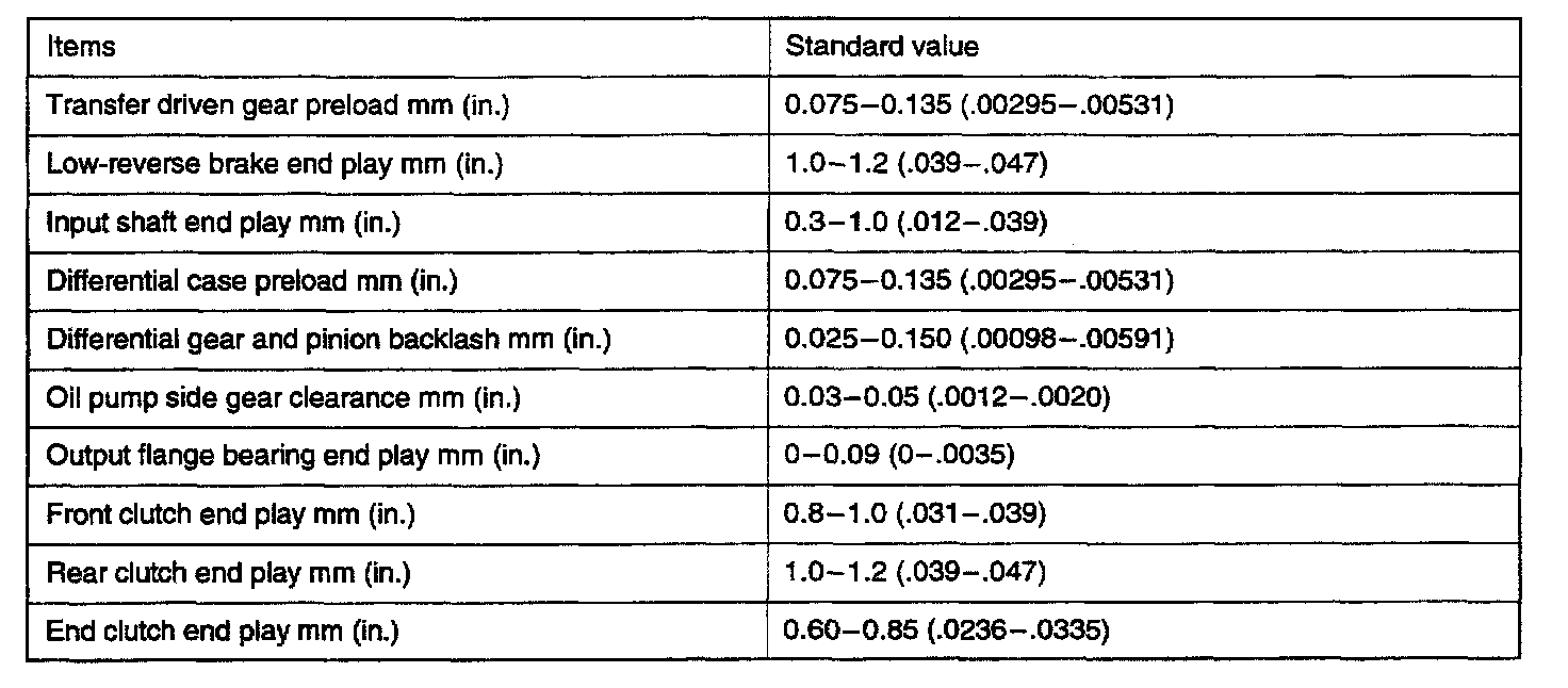 F4A33 4-spd A/T, Clutch End Play & Differential/transfer Gear Preload: