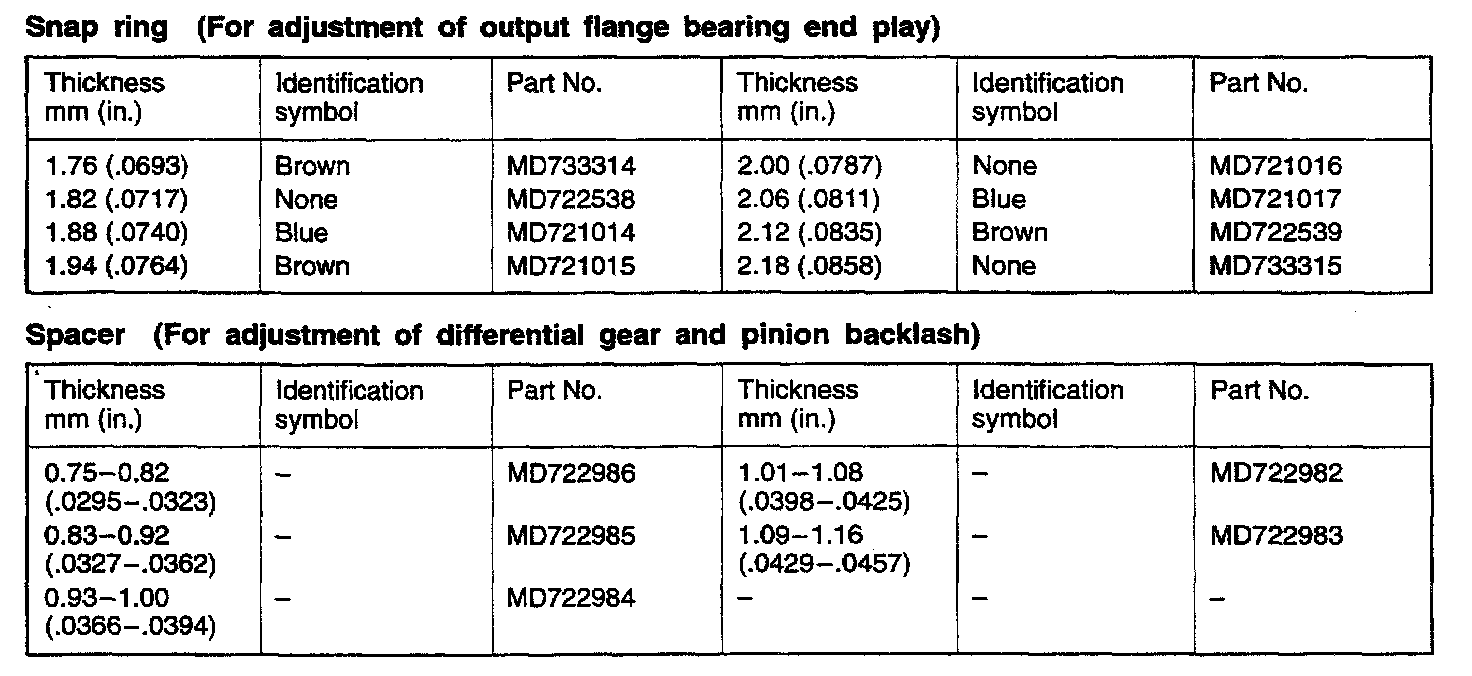 F4A33 4-spd A/T, Output Bearing End Play & Differential Gear Backlash: