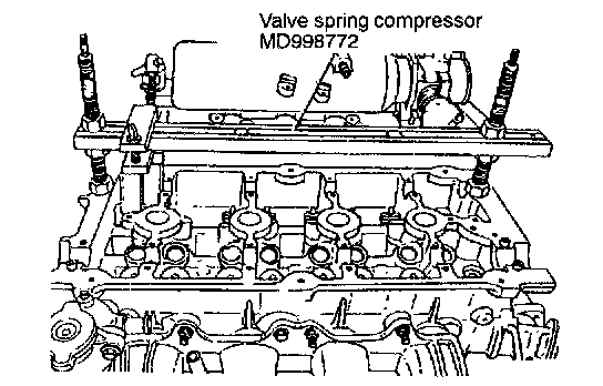 2. With cylinder head removed, compress valve springs using Special Tool MD998772 or equivalent.
