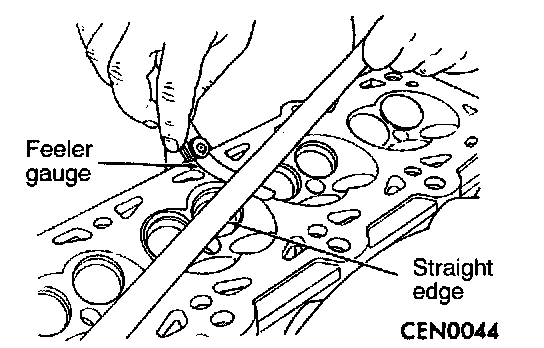 1. Check the cylinder head gasket surface for flatness by using a straightedge and feeler gauge.