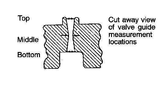 2. Using a small hole gauge and a micrometer, measure valve guides in 3 places top, middle and bottom. Replace guides if they are not within specification.