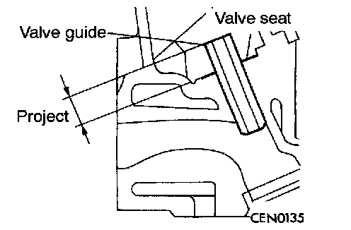 3. Install the valve guide until it projects 13.25 - 13.75 mm (0.522 - 0.541 inch) from the cylinder head as illustrated.
