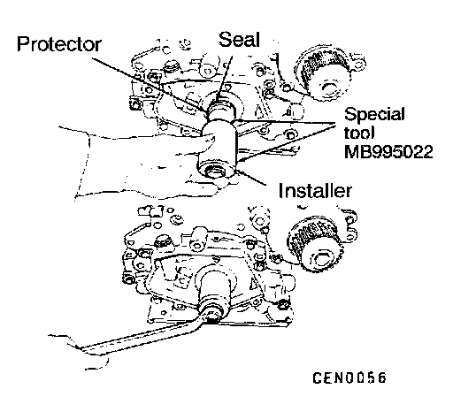 9. Use Tool MB995020 to remove front crankshaft oil seal. Be careful not damage the seal surface of cover.