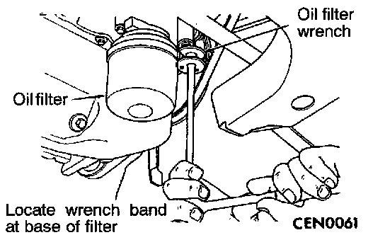 CAUTION: When servicing the oil filter avoid deforming the filter can by installing the remove/install tool band strap against the can-to-base lockseam. The lockseam joining the can to the base is reinforced by the base plate.